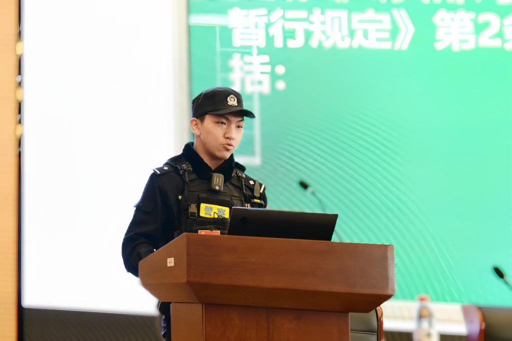 丁警官围绕“禁止管制刀具进校园、反校园暴力、反电信诈骗”三大安全主题展开讲解。结合近年来高校真实案例、翔实数据与专业法律解读,既清晰说明管制刀具的现实危害、校园暴力的严肃法律后果,也拆解了电信诈骗的各类隐蔽套路,打破学生对校园安全的认知误区、明确安全风险边界。他还重点说明了“危险行为识别—暴力倾向预警—诈骗话术拆解”三级防范体系,指导学生识别各类安全风险信号,引导大家做到“早发现、早报告、早规避”,熟练掌握自我保护技巧。同时强调“安全无小事”的责任意识,号召同学们主动担当,既要做自身安全的第一责任人、时刻绷紧安全弦,也要做身边同学的安全守望者,发现风险及时提醒上报,携手共建平安和谐的校园环境。