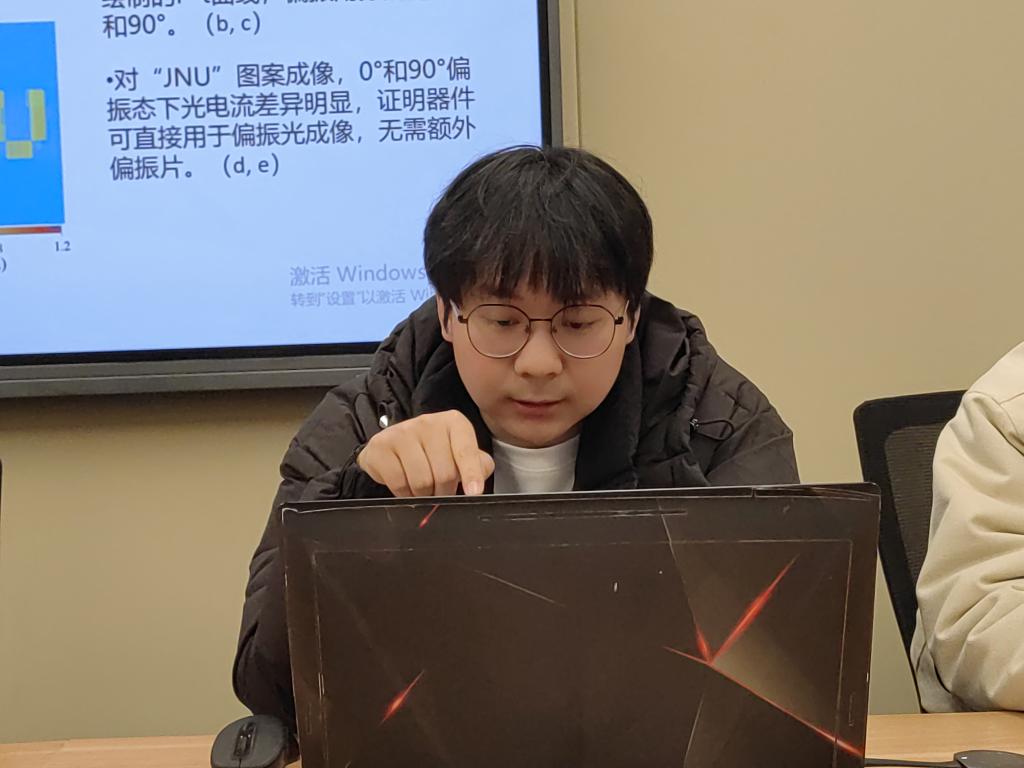 李朋凡围绕《基于低维Sb₂Se₃微纳结构的异质结型宽光谱自驱动光电探测器》主题,分享了成功构建该项驱动光电探测器的研究过程。他指出,该器件利用rGO作为界面修饰层,形成阶梯能级促进载流子分离,实现了从可见到近红外(350–1000 nm)的宽光谱响应。在零偏压下,该器件展现出高开关比(907)、快速响应(~30 ms)及优异的偏振敏感特性,各向异性比在806 nm处达1.69。通过偏振成像演示,验证了其无需外部偏振片即可实现偏振光探测的实用潜力,这为高性能、低功耗、多功能集成光电探测器进一步探索提供了新思路。