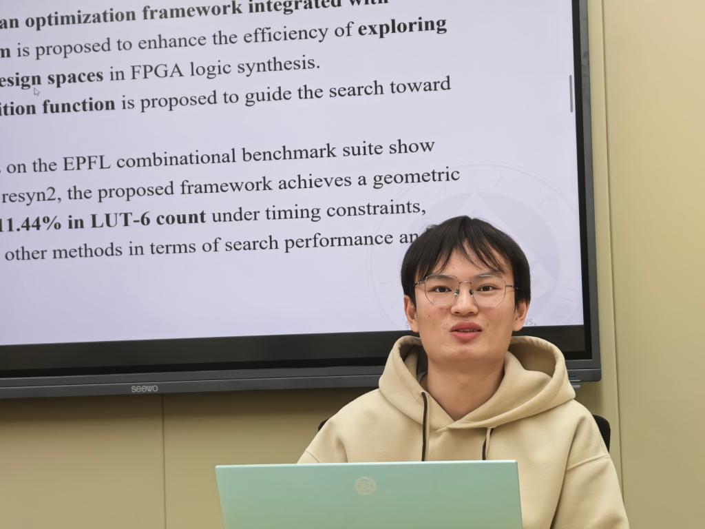 成锡军以《BOAMLS:基于注意力机制的 FPGA 逻辑综合贝叶斯优化》为主题展开。他针对 FPGA 逻辑综合中存在的低效性与局部最优问题,提出了一种融合注意力机制的 FPGA 逻辑综合贝叶斯优化框架。该框架专为高维设计空间的高效搜索探索而设计,并开发了一种自适应采集函数以保障鲁棒的全局搜索能力。实验结果验证了该框架在满足时序约束的前提下,实现了优异的 LUT 资源缩减效果。